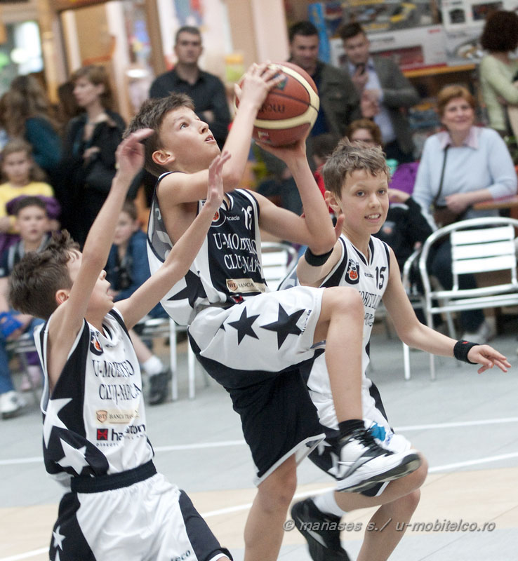 Imagini de la finala categoriei babybaschet 2002 dintre "U" Mobitelco Zorilor si "U" Mobitelco Grigorescu, incheiata cu victoria celor din Grigorescu, scor 39-15. FOTO: Manases Sándor