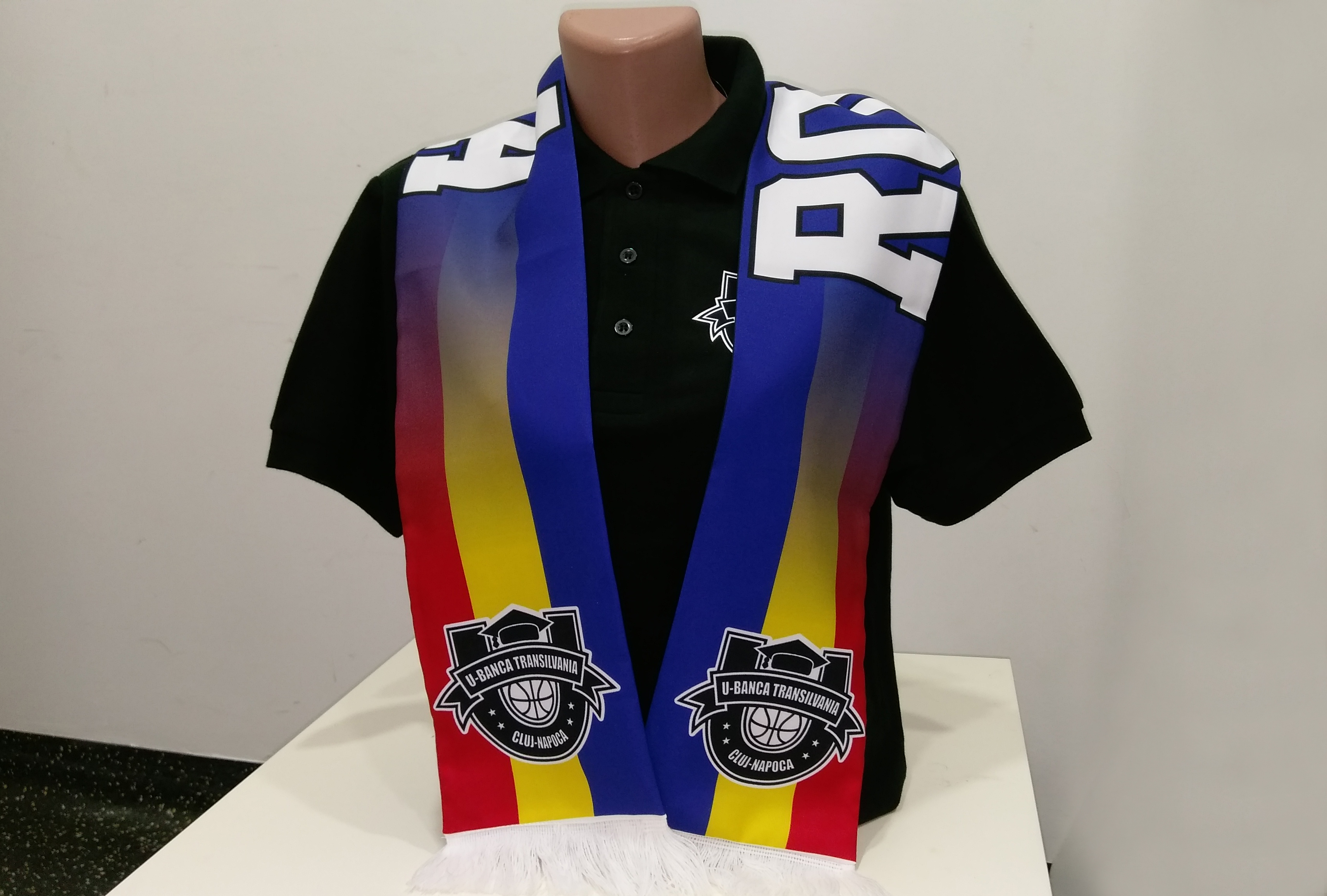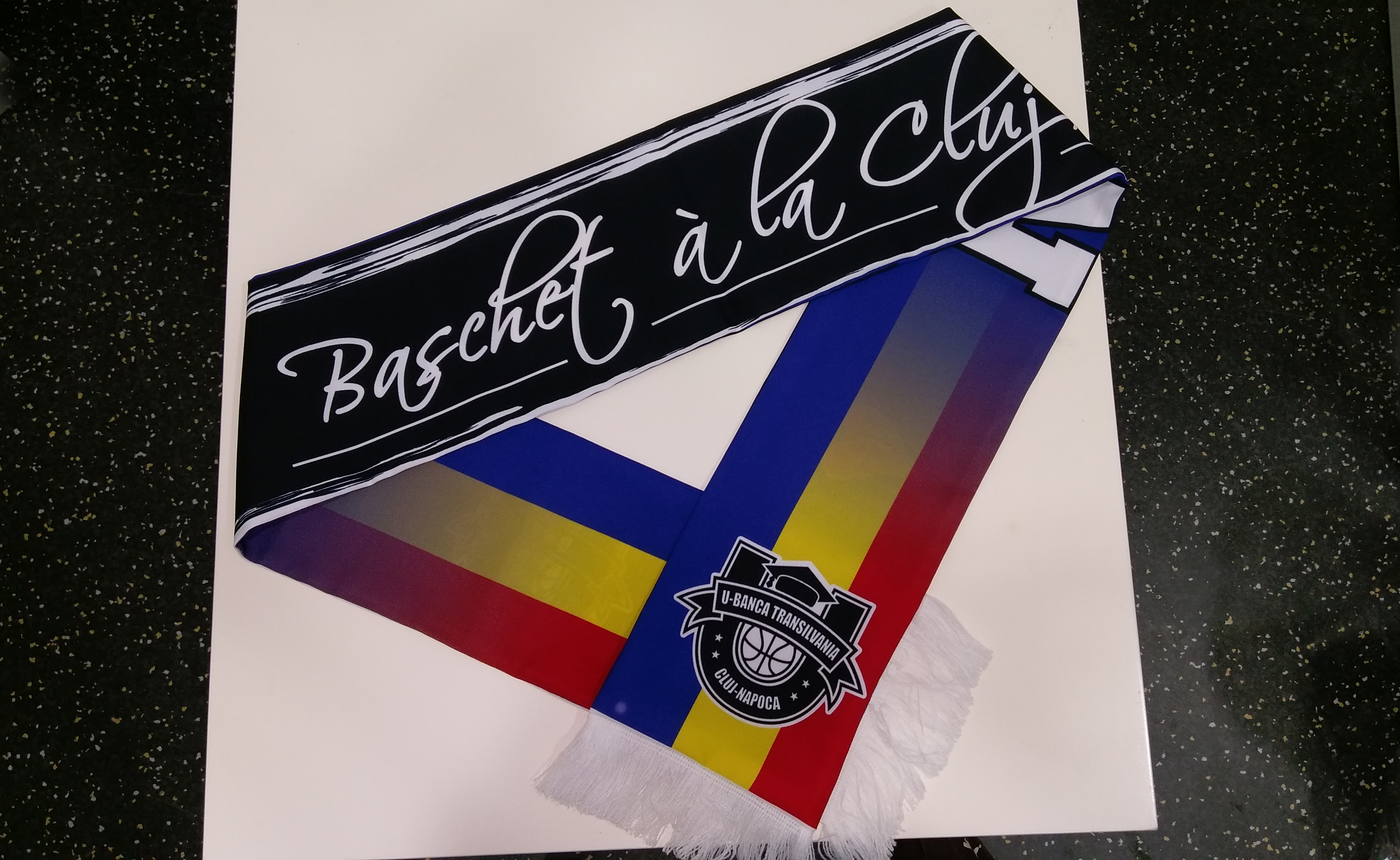 Fanii vor găsi, de asemenea, eșarfe în două modele, cu ”Baschet a la Cluj” și cu tricolor, la prețul de 25 de lei cele mari, pentru adulți și 20 de lei pentru copii.